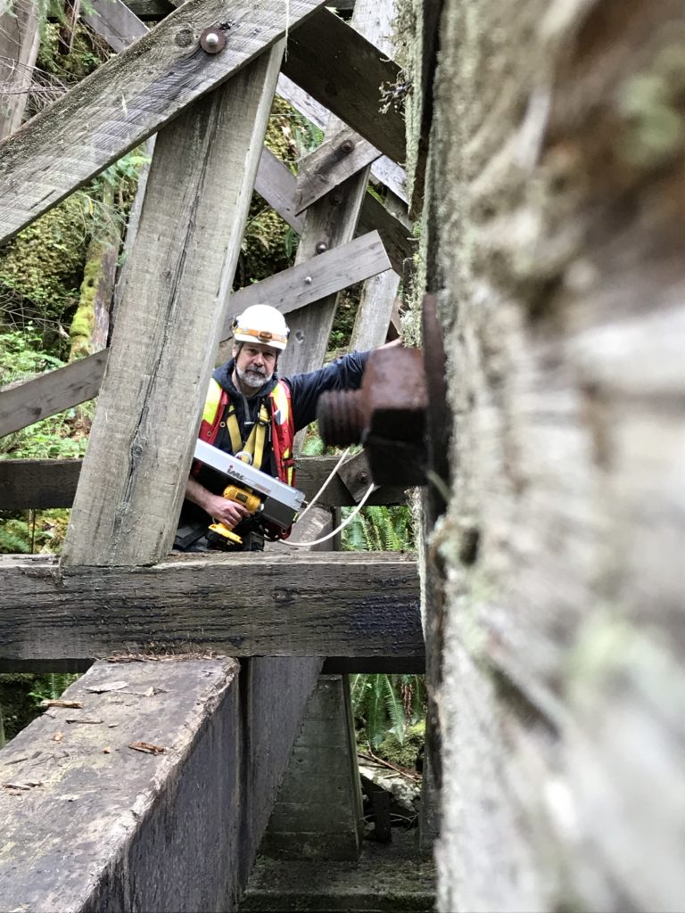 Ben uses resistography to determine the strength of fire damaged bridge pilings