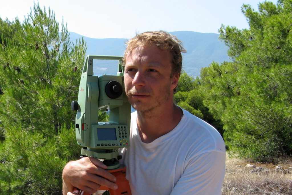 Dan Stewart using GPS to identify Roman masonry at Knossos, Crete