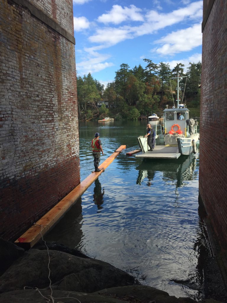 Leif Roebuck receives a 56ft traveller beam from the Navy at Cole Island