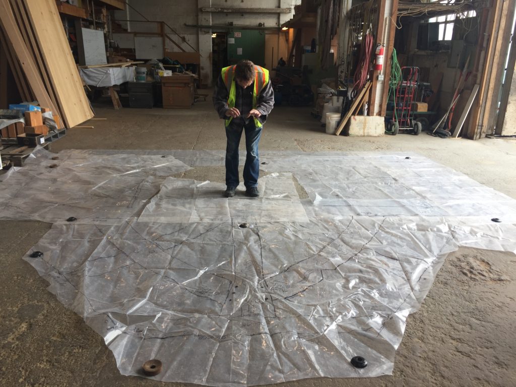 Tom Linzey makes full-scale templates of the Coney Street frame