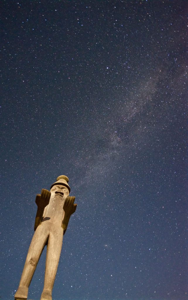 Welcome figure of Chief Macquinna’s People at Yuquot National Historic Site, under the Milky Way