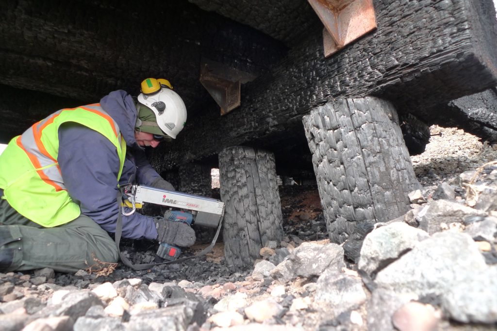 Ben uses resistography to determine the strength of fire damaged bridge pilings