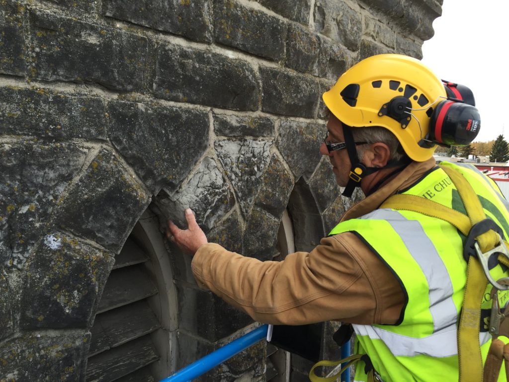 Nigel Copsey performs masonry evaluation for St Luke’s in Red Deer