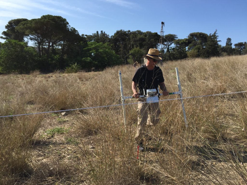 Ben uses the UoL magnetometer to perform sub-surface geophysics investigation at Knossos